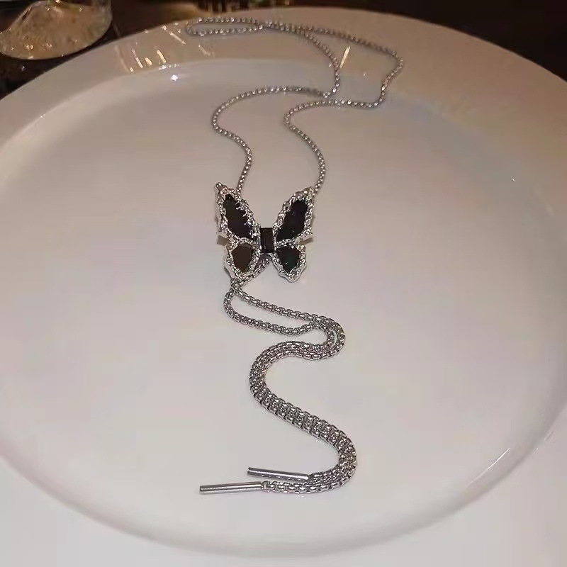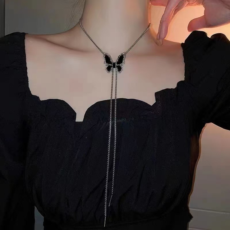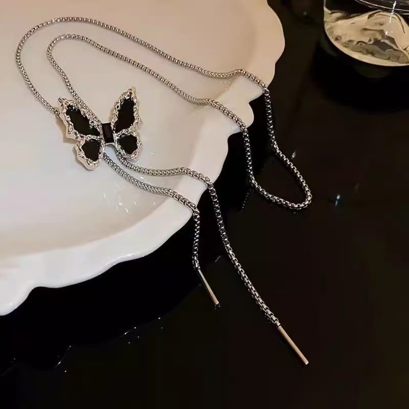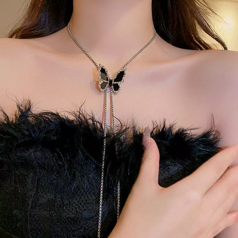Color: XL008 Black Diamond Long Bowknot Necklace
