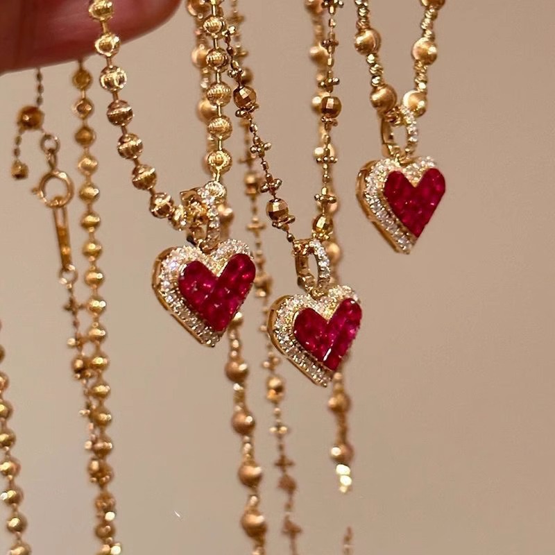 Red Heart Pendant Necklace With A Niche Sophisticated Vibe
